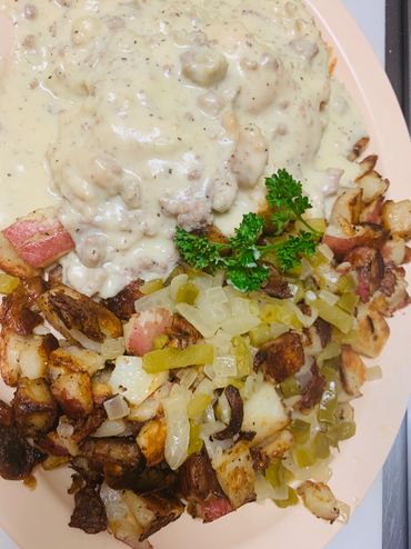 Home fried potatoes $5.95 (add bell pepper and onion) $0.95