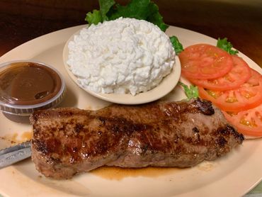 Served with 2 eggs; and choice of 2 bacon strips, 2 sausage links, 1 sausage patty, OR 1/2ham slice .
